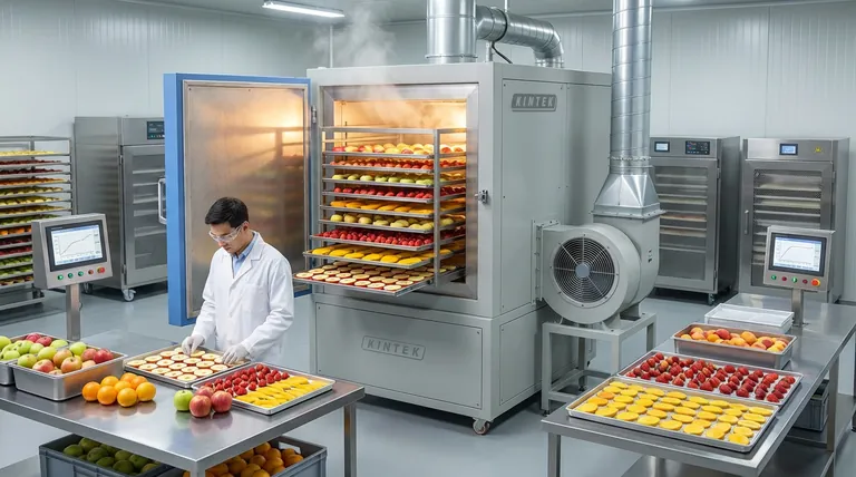 果物材料の優れた乾燥性能を引き出します。当社のKINTEK工業炉(マッフル、チューブ、ロータリー、真空、CVDシステムを含む)は、専門的なR&Dと製造により、お客様固有のニーズを満たすように設計されています。精密な温度制御から均一な乾燥まで、最適な製品品質と栄養素の保持を保証するカスタマイズ可能な高温ソリューションを提供します。プロセスを強化する準備はできましたか?工業用乾燥オーブンの要件について、今すぐお問い合わせください!