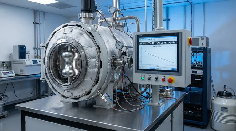 精密で低速の冷却速度は、 Nb3Sn空洞の熱処理中に、材料が周囲の磁束をトラップしないようにするために不可欠です。0.1 K/分のような厳密に制御された速度を維持することにより、空洞が最適な品質係数に達し、性能データが手順のエラーではなく実際のコーティング品質を反映していることを保証します。
