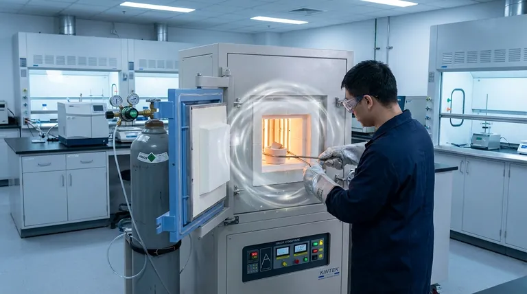 正確に制御されたアルゴン雰囲気で、高温プロセスの完全性を保証します。 KINTEKでは、優れた研究開発と社内製造を活用し、チューブ炉、真空・雰囲気炉、CVD/PECVDシステムなど、お客様固有の実験要件を満たす強力な深層カスタマイズ機能を備えた高度な炉ソリューションを提供しています。今すぐお問い合わせいただき、お客様の重要な研究室の用途に最適な不活性環境をどのように構築できるかご相談ください。お問い合わせフォームからご連絡ください