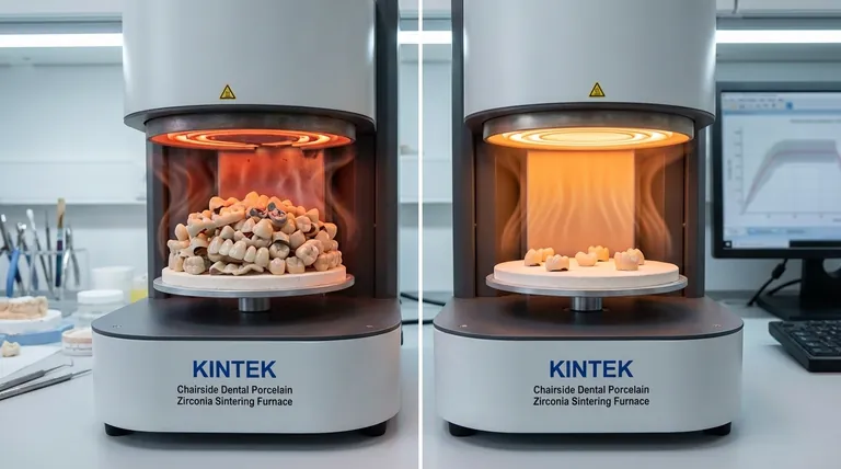 この不均一な加熱は、失敗したバッチに直接つながります。焼結不足の領域は多孔質で弱くなり、正しい色調や半透明性を達成できない可能性があります。これは咬合荷重下での破折や不十分な辺縁適合につながり、修復物の完全な作り直しが必要になります。